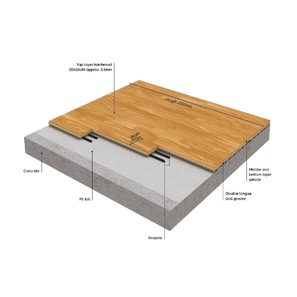 Boen - BoFlex Stadium Maple 3.5 mm x 86.63 in. L x 5.44 in. W Hardwood Flooring (19.48 sq. ft./box)