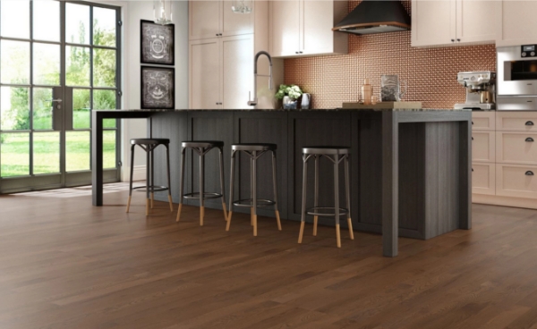 Mercier - Design Plus Select and Better Engineered 5 3/4 Red Oak Gunstock Satin Random 12-84 in. L x 5 in. W Hardwood Flooring (22 sq. ft./box)