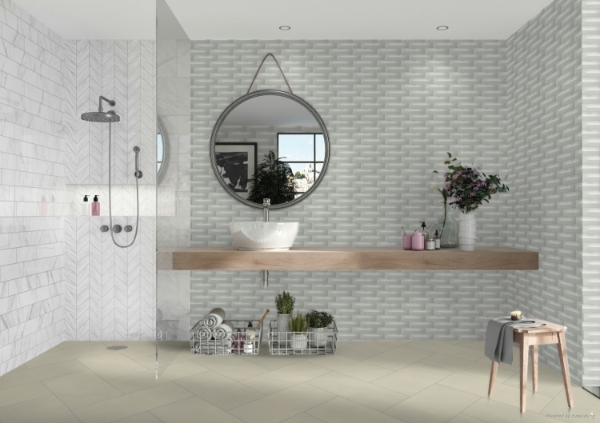 American Olean - Color Story Pinstripes Wave Crest Balance 8.56 in. L x 2.13 in. W Tile & Stone Flooring (10.4 sq. ft./box)