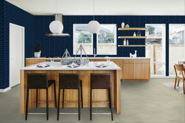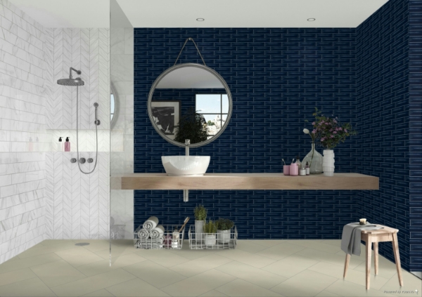 American Olean - Color Story Pinstripes Wave Crest Navy 8.56 in. L x 2.13 in. W Tile & Stone Flooring (10.4 sq. ft./box)