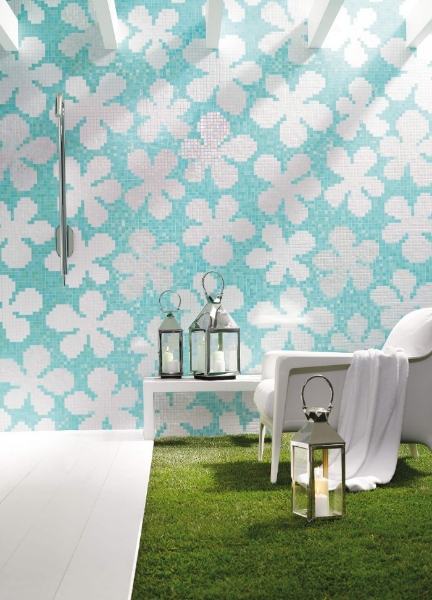 Bisazza Mosaico - Decori 20 - Glass Flowers New Blue 12.69 in. L x 12.69 in. W Tile & Stone Flooring (40.1 sq. ft./set)