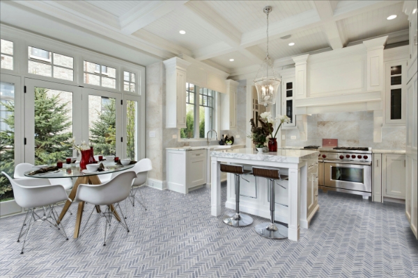 Elon Tile & Stone - Herringbone Mosaics 1 x 4 Blue Mist Honed 12 in. L x 11.062 in. W Tile & Stone Flooring (1 sheet(s))