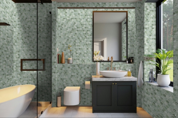 Elon Tile & Stone - Hexagon Mosaics 2 Emerald Green Honed 11.75 in. L x 11.937 in. W Tile & Stone Flooring (1 sheet(s))