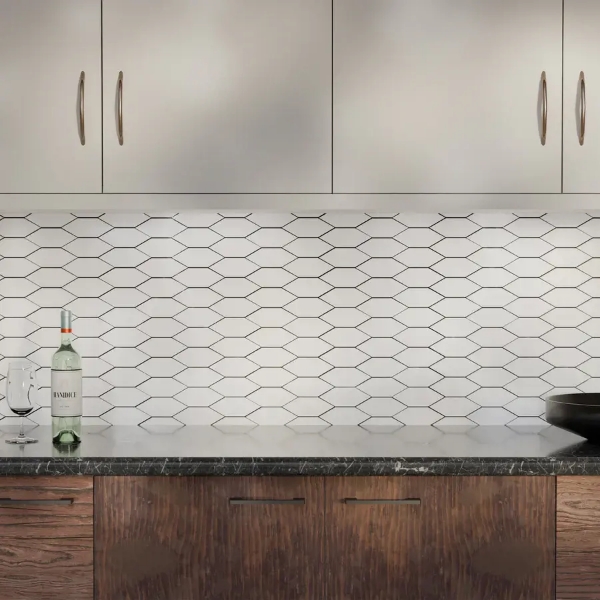 Elon Tile & Stone - Lagos 2 x 6 Picket Mosaic White Picket Glossy 12.56 in. L x 9 in. W Tile & Stone Flooring (1 sheet(s))