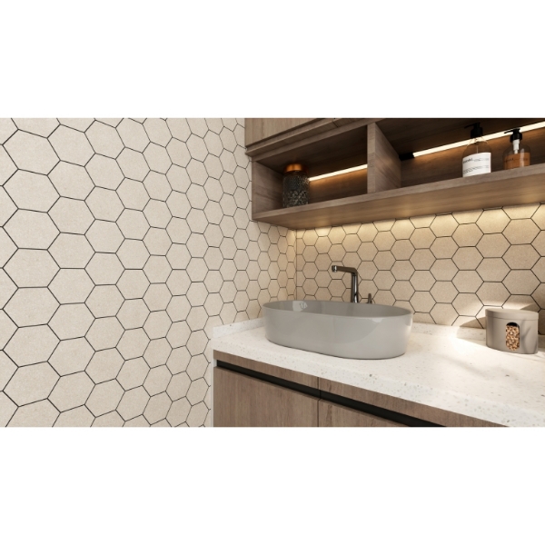 Emser Tile - Fragmento Hex Mosaic Pearl Small Speckle 11.65 in. L x 10.06 in. W Tile & Stone Flooring (8.943 sq. ft./box)