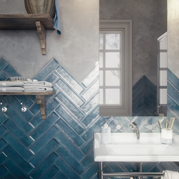 Emser Tile - Raku Blue Glossy 11.81 in. L x 2.95 in. W Tile & Stone Flooring (6.3 sq. ft./box)