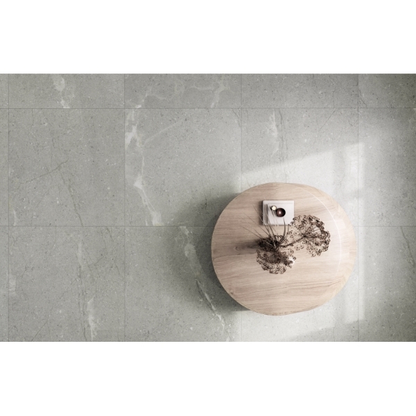 Experience the sophistication of natural stone with Terramor. Combining genuine texture, a timeless palette, and low-maintenance porcelain, this large-format series creates a classic yet contemporary look, especially when mixing decorative groove tiles with flat ones for added depth.