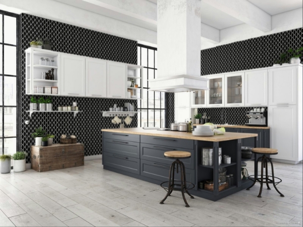 Happy Floors - Artisan Elongated Hexagon Mosaic Black 11 in. L x 10.5 in. W Tile & Stone Flooring (1 sheet(s))