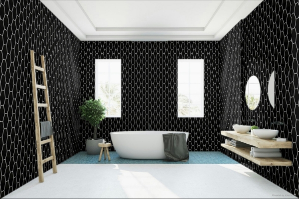 Happy Floors - Artisan Elongated Hexagon Tile Black 8 in. L x 3 in. W Tile & Stone Flooring (5.49 sq. ft./box)
