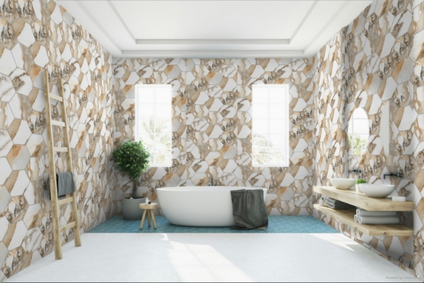 Happy Floors - Crash Hexagon Mosaic Beige Natural 14 in. L x 10 in. W Tile & Stone Flooring (1 sheet(s))