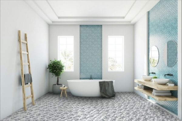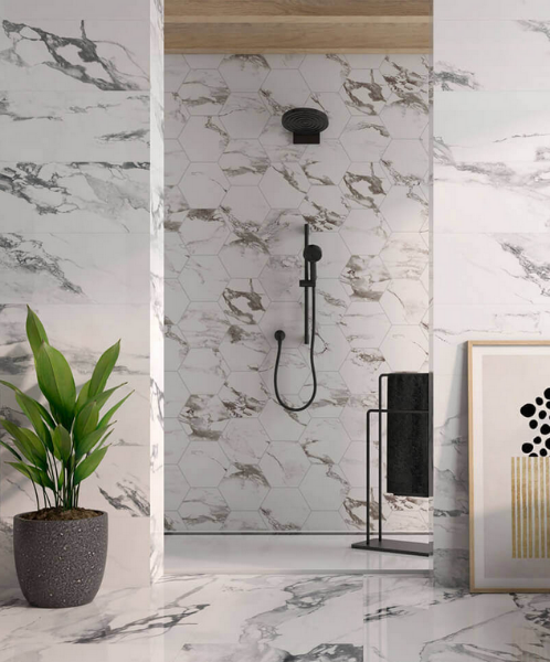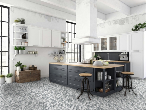 Happy Floors - Crash Hexagon Tile Blanco 11 in. L x 10 in. W Tile & Stone Flooring (10.76 sq. ft./box)