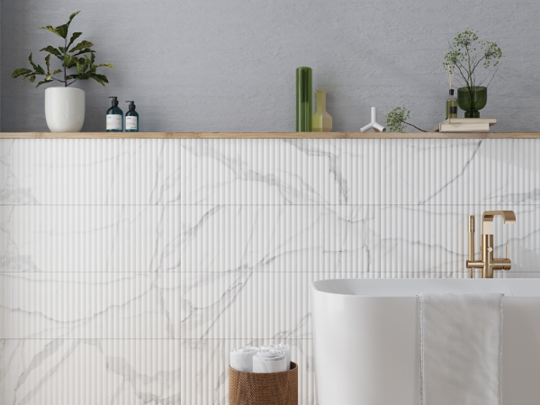 MiR Mosaic - Impressions 12 x 36 Fluted Carrara 35.43 in. L x 11.81 in. W Tile & Stone Flooring (11.63 sq. ft./box)