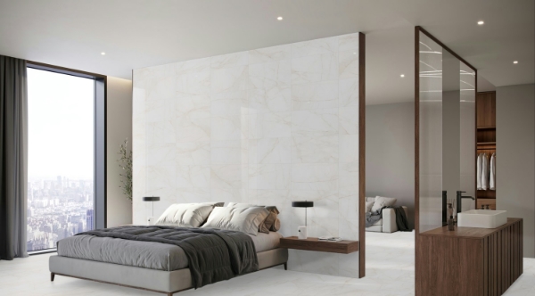 Dolomita is a high-performance surface inspired by the calm elegance of natural stone. Its refined finish reveals a marble-like appearance with lustrous copper accents and soft gray veining set against a pearly white background, creating a balanced and visually captivating design.