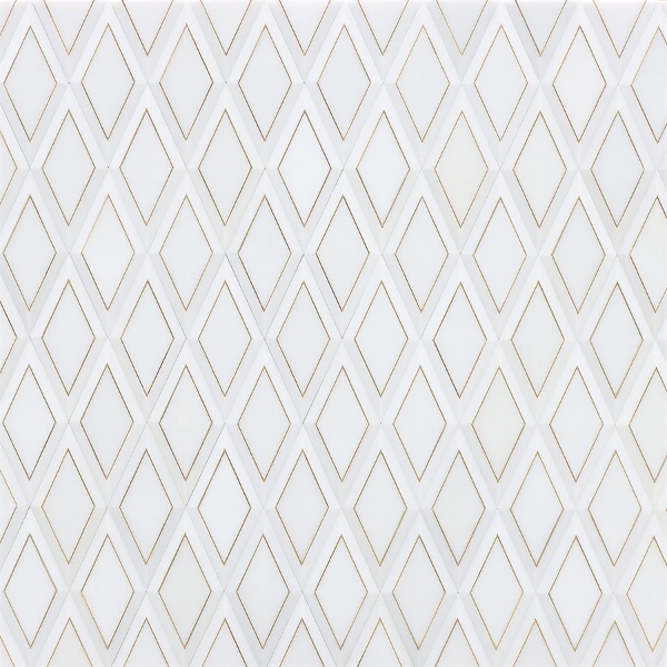 SOHO Studio Corp - Cabot White Jade Brass Inlay 11.81 in. L x 5.51 in. W Tile & Stone Flooring (4.51 sq. ft./box)