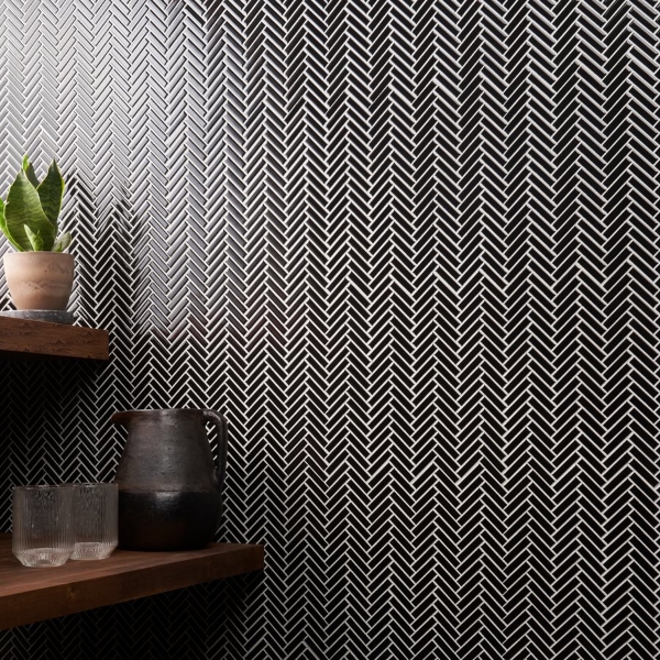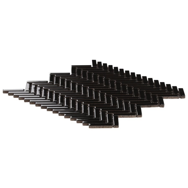 SOHO Studio Corp - Motek Herringbone Mosaic Polished Black 11.14 in. L x 11.14 in. W Tile & Stone Flooring (1 sheet(s))