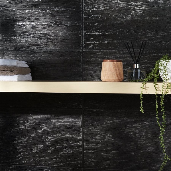 SOHO Studio Corp - Speak Decoro Leather Black 23.62 in. L x 11.81 in. W Tile & Stone Flooring (11.62 sq. ft./box)