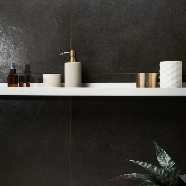 SOHO Studio Corp - Speak Leather Black 23.62 in. L x 23.62 in. W Tile & Stone Flooring (11.62 sq. ft./box)