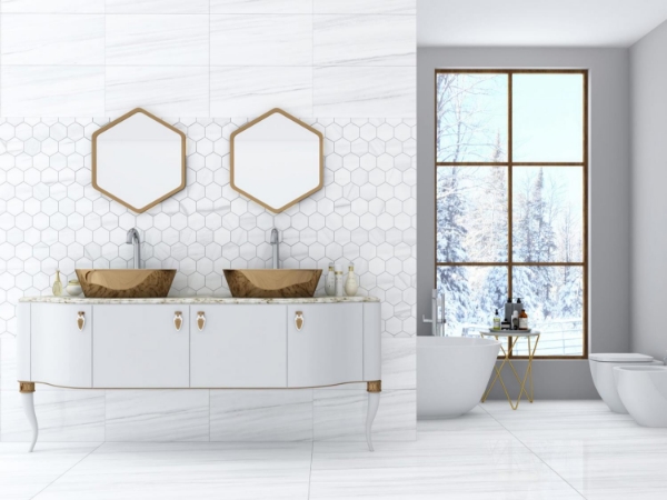 Tesoro - Lucca Hexagon Mosaic Dolomite Polished 11.75 in. L x 10.25 in. W Tile & Stone Flooring (1 sheet(s))