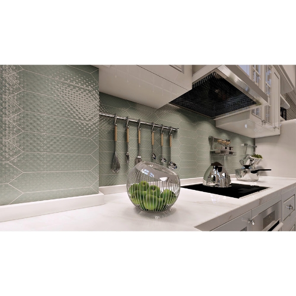 Tesoro - Marrow Picket Seafoam Glossy Deco 12 in. L x 3 in. W Tile & Stone Flooring (10.98 sq. ft./box)