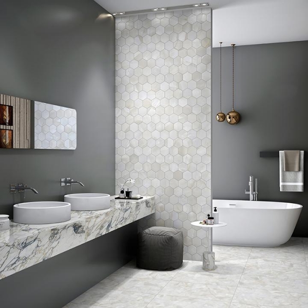 Tesoro - Mother of Pearl Hexagon Mosaic Ivory Polished 11.75 in. L x 10.25 in. W Tile & Stone Flooring (1 sheet(s))