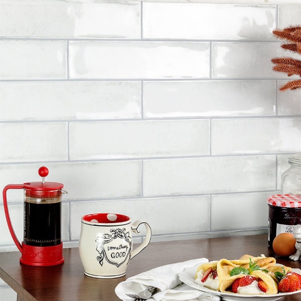 SOHO Studio Corp - Alchimia White 12 in. L x 3 in. W Tile & Stone Flooring (5.38 sq. ft./box)
